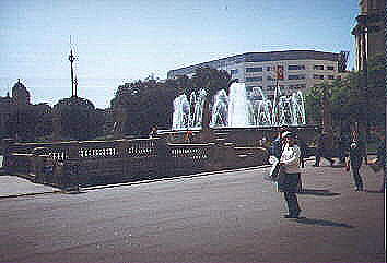 Wo wir doch gerade an der Plaza d'España sind können wir auch noch eine Rundreise über das Olympiagelände unternehmen. Hierzu besteigen wir den Besichtigungszug (ein Trecker mit 2 Anhängern) der direkt an der Plaza auf uns wartet (500 Peseten für die Rundreise) Die Reise führt uns zum Eingang des Palacio Alfons II. Und weiter an den Sportstätten der Olympiade 1992 vorbei zum Montjuich. Hier steht eine Zitadelle in der das Armeemuseum untergebracht ist. Interessant ist der Rittersaal mit Rüstungen hierin starb Graf Soundso mit einem Morgenstern im Brustpanzer und Ähnliches. Aber natürlich auch Schlachtenordnungen und Darstellungen aus dem spanischen Bürgerkrieg. Sollte der Treckerfahrer zu schnell fahren (ihre Sitze sind nicht gepolstert, seiner schon) rufen Sie laut nach der Polizei. Er vergißt dann sein Vorbild (Michael Schuhmacher). |