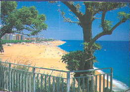 Calella (gesprochen kalelja) liegt an der Costa Maresma. (Bei Blanes hört die Costa Brava auf) Calella de la Costa im Sommer ist ein echter Touristenort. Das bedeutet im Reiseprospekt-Deutsch ein Ort für junge Leute. Was Sie erwarten können: 1. Ein breiter Strand, der selbst in der Hauptsaison nicht überlaufen ist. 2. Ein Ausflugspro-gramm, das sämtliche Ausflüge zu den Sehenswürdigkeiten von Rosas bis Montserrat beinhaltet. 3. Ein Nachleben für jede Altersklasse. 4. Ein Shoppingparadies von der Touristenware bis zu hochwertiger (natürlich auch teuerer) Mode.5. Eine Gastronomie, die sämtlich Küchen von der katalanischer über die britische und amerikanische (wer auch immer so etwas als Küche bezeichnet) bis zur französischen und deutschen Küche.(Fragen Sie ihren Hotelier - vielleicht brauchen sie ein Auto). Zum Thema Nachtleben: Diskotheken für jüngere Leute wie Turisme 35, Highwayman und noch ein halbes Dutzend. Tanzlokale wie das La Quadra, das la Tormenta (mit Show), das Craizy Daysi sind mehr etwas für die reifere Jugend. |